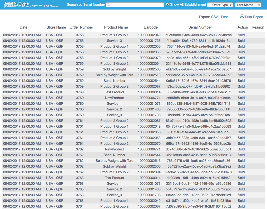 Serial Numbers Report